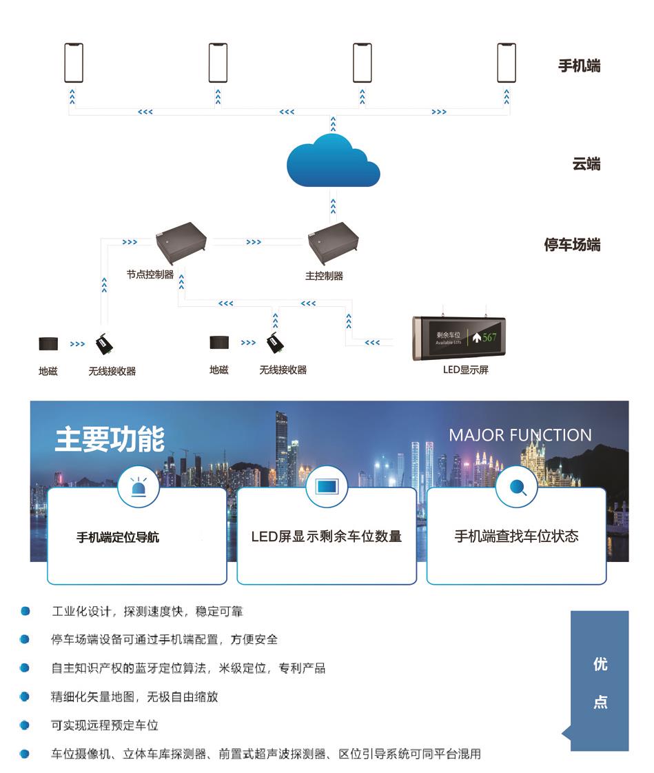 车位引导系统致力于解决当前停车场内车主无法快速找到空车位的问题,车主也往往由于停车场空间大,环境及标志物类似、方向不易辨别等原因,容易在停车场内迷失方向,寻找不到自己的车辆等问题。同时,致力于达到降低运营管理人员成本,消除寻找车位的烦恼,提高业主对停车场乃至其所属物业公司的满意度;加快停车场的车辆周转,提高停车场的使用率和经济效益;提升停车场管理水平,提高停车场所属公司的对外形象的目的。