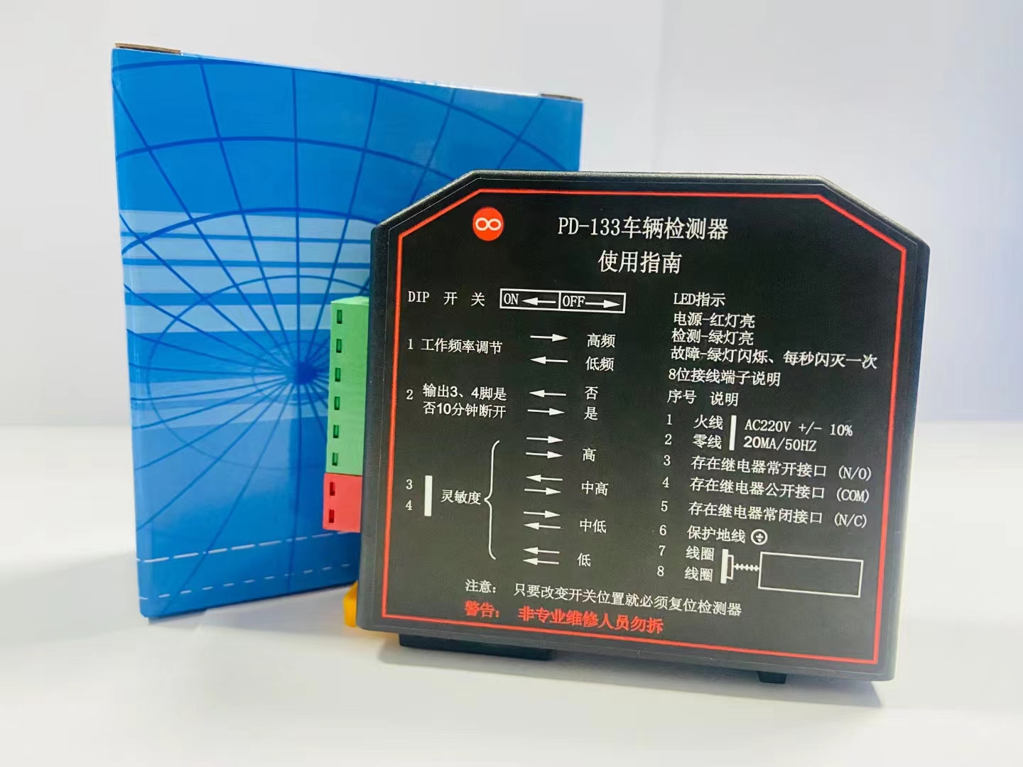 接通电源后,检测器将会自动校准。校准过程约1秒。校准进行时,面板上的两个LED灯常亮。在校准期间,不应有车停在线圈上。当校准成功后,面板上的“检测”指示灯熄灭,当线圈上有车通过时,面板上的“检测”指示灯亮起,且继电器(3、4脚)吸合导通。若在校准过程中未检测到线圈,面板上对应的指示灯将不停地闪烁。